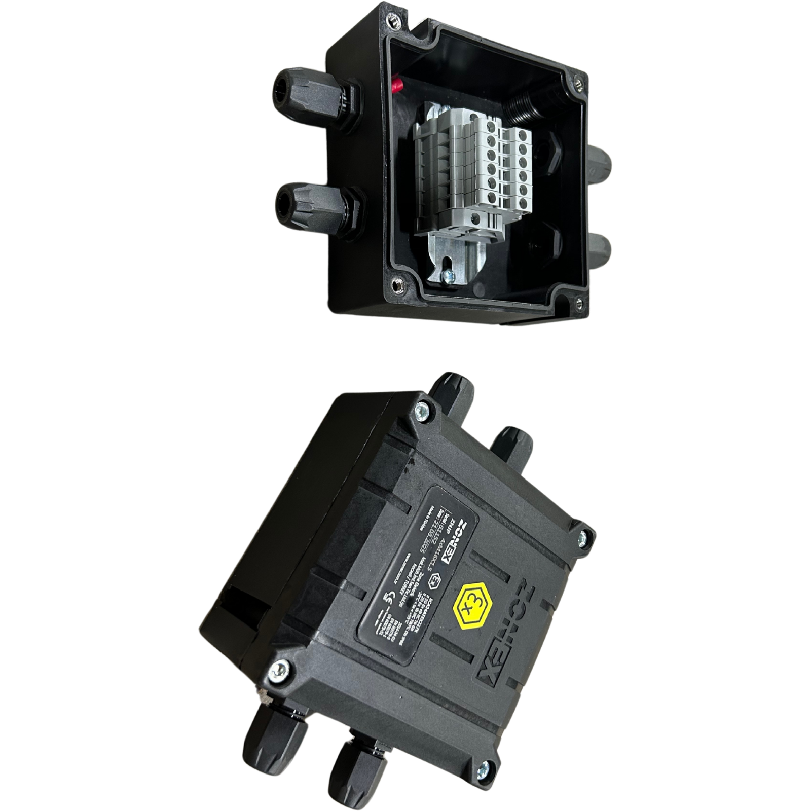 ZNJP.X Serisi Exproof Junction Box; tehlikeli gaz ve toz ortamlarında kullanılan, hafif ve korozyona dayanıklı GRP (Glass Reinforced Polyamide) gövdeye sahip ATEX sertifikalı bağlantı kutularıdır. 2’den 8’e kadar değişen gland giriş sayısı, M20–M25 giriş çapı seçenekleri ile endüstriyel saha bağlantılarında ideal çözümdür.